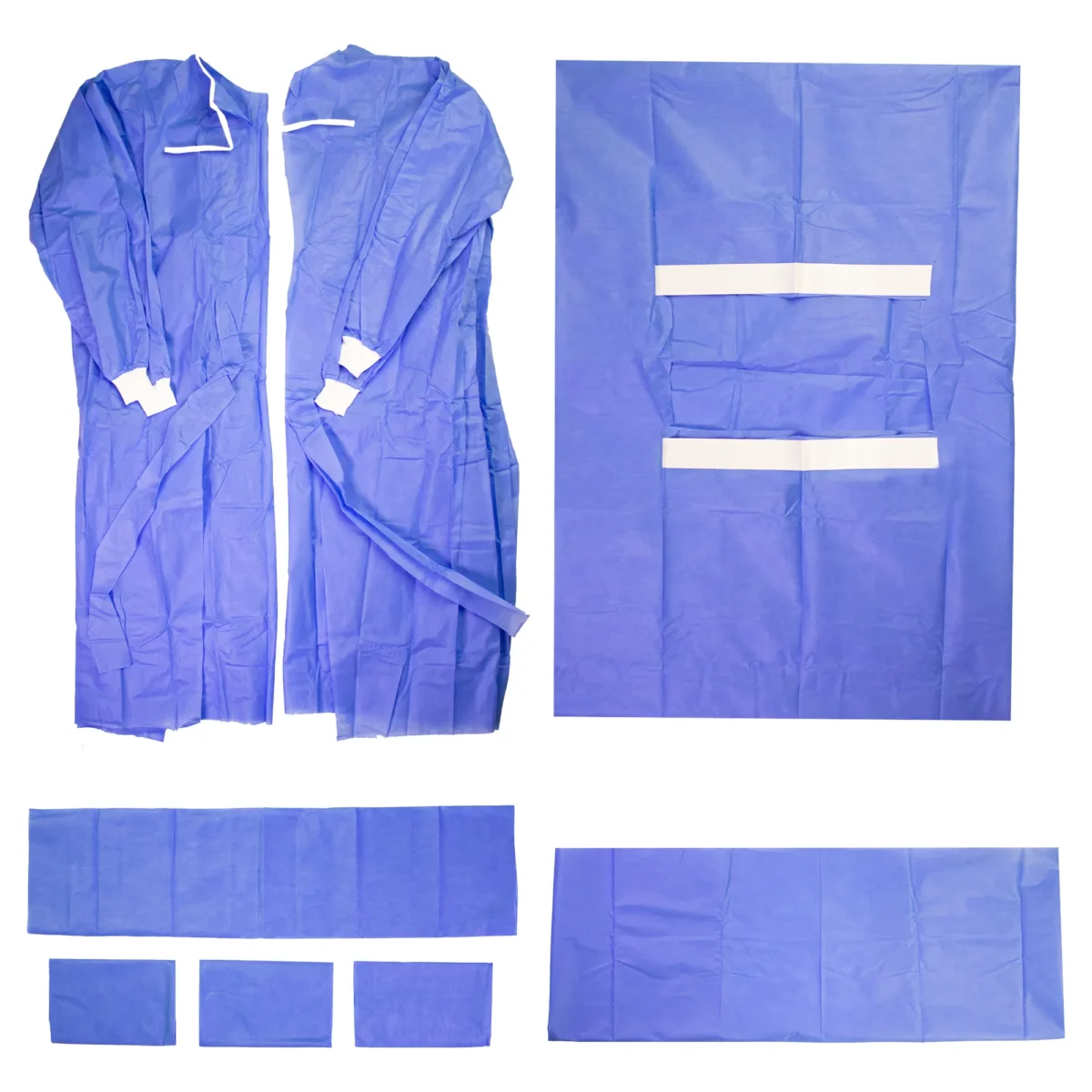 General Surgery pack 2 Gown (4 self adhesive drape/ 1 Split drape / 2 surgical gown / 1 Table cover ) density 35 G (10 pieces)